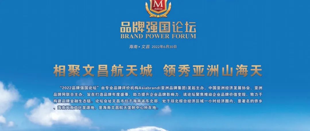 重磅推介| “2022品牌强国论坛暨中国科技创新品牌500强发布会”将在海南文昌举行!